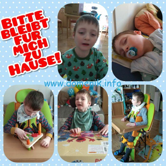 Domenik gehört ja auch zur Risikogruppe und zu groß ist unsere Angst. Vor 2 Jahren erkrankte er an der „normalen“ Grippe, lag zwei Wochen lang komplett flach und schon da war unsere Angst sehr groß!